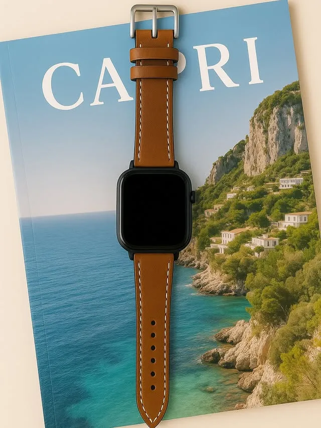 thin dark brown leather apple watch strap